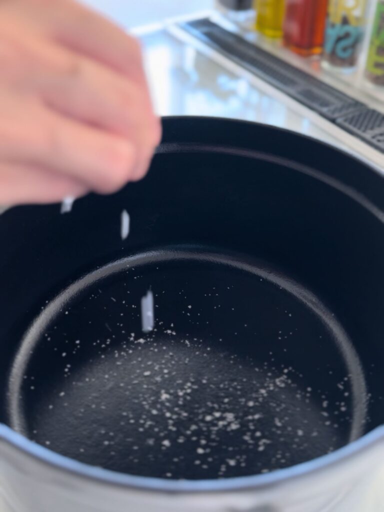 - 蓋は蒸気口のないものを使ってください。もし蒸気口がある場合は、アルミホイルや野菜の切れ端などでふさいでおくと◎です。