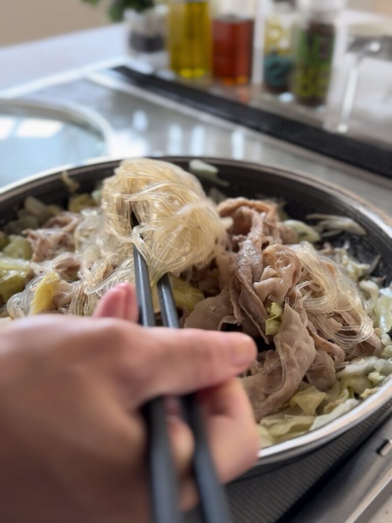 ・春雨は必ず「緑豆春雨」を使用してください。馬鈴薯春雨を使う場合はあらかじめ戻して、食べる直前に加えると食感が保てます。