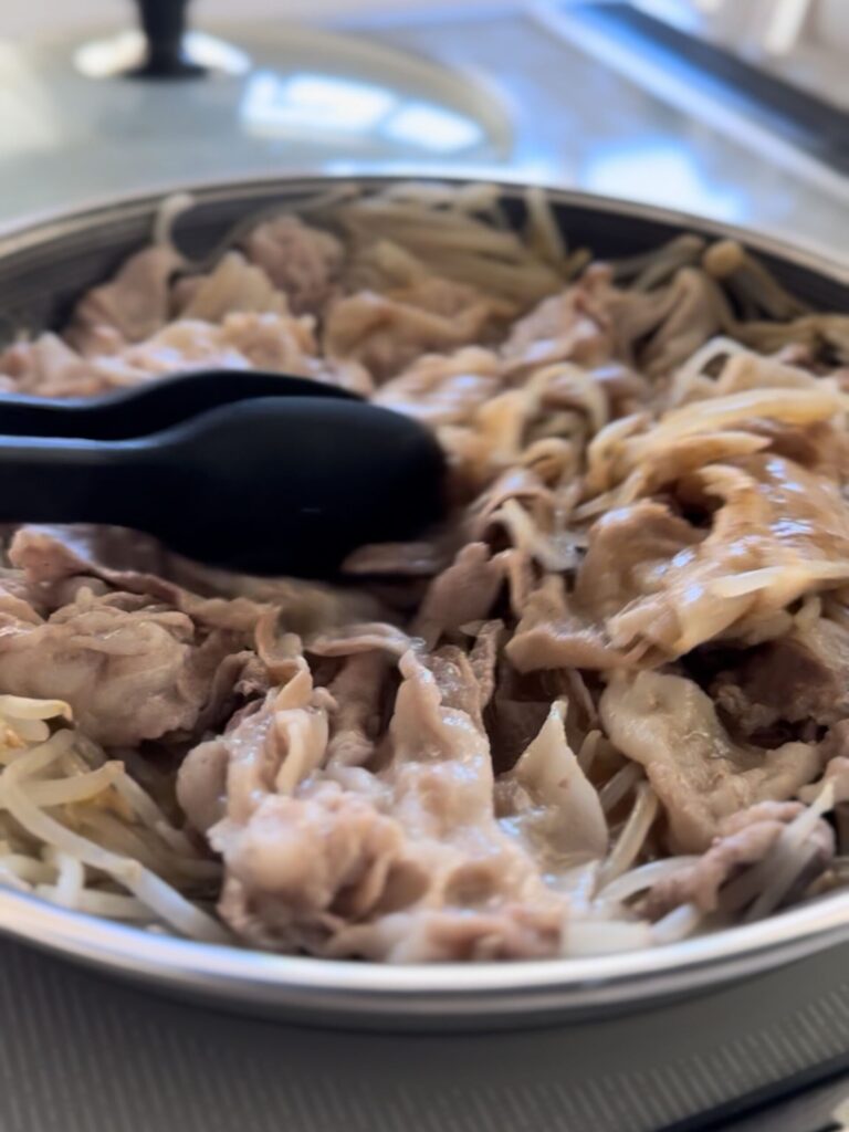 - 豚肉のうまみを吸ったもやしとえのきが絶品