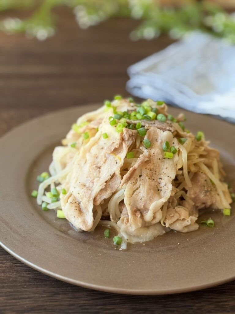 豚肉のうまみをたっぷり吸った、シャキシャキ食感のもやしとえのきがやみつきになる一皿です。