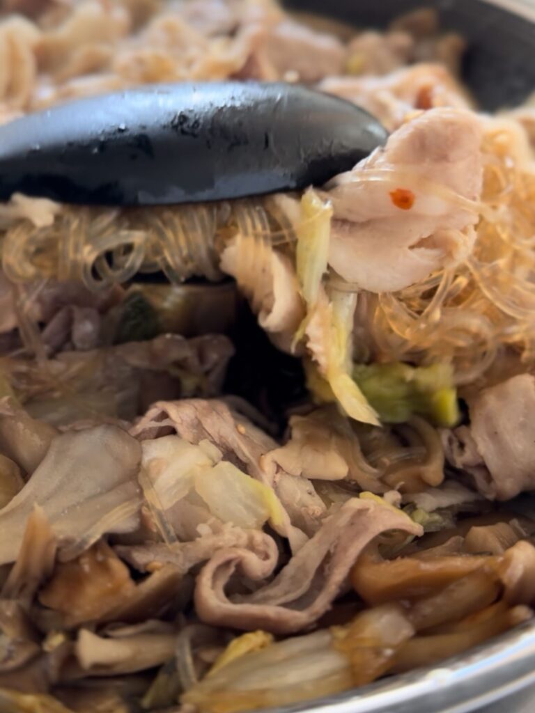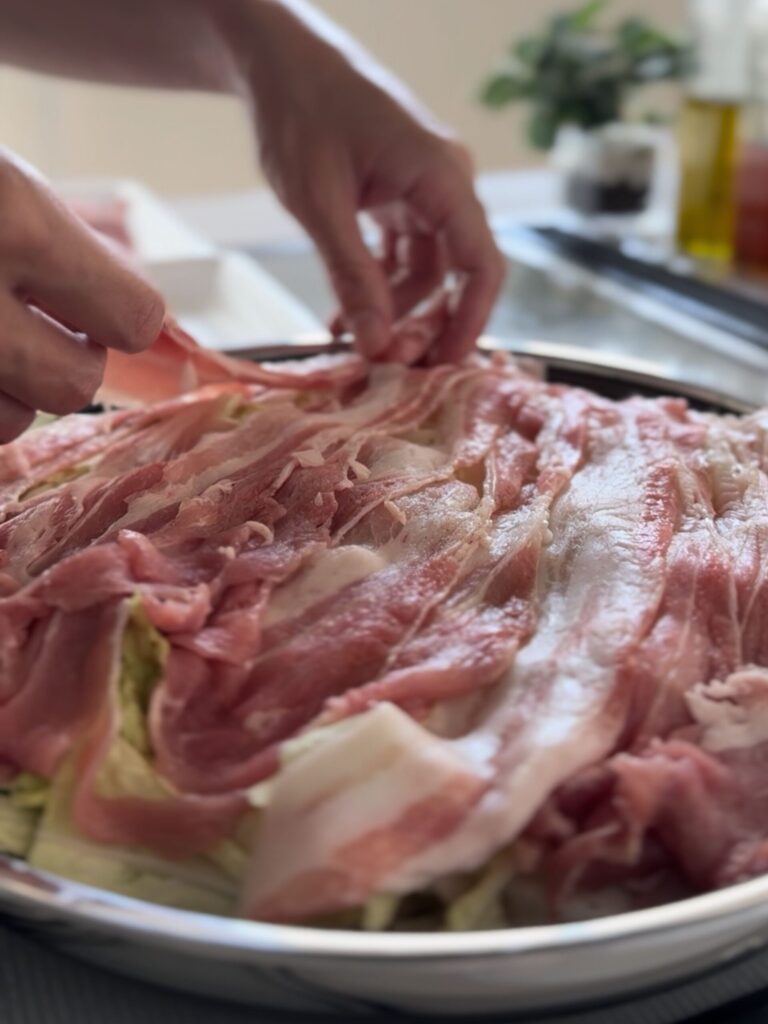 白菜の甘みと豚バラ肉の旨みを春雨がたっぷり吸って、モチモチ食感に仕上がります。