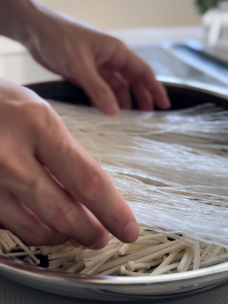 - 重ね蒸しで素材の旨みが春雨にしみ込む