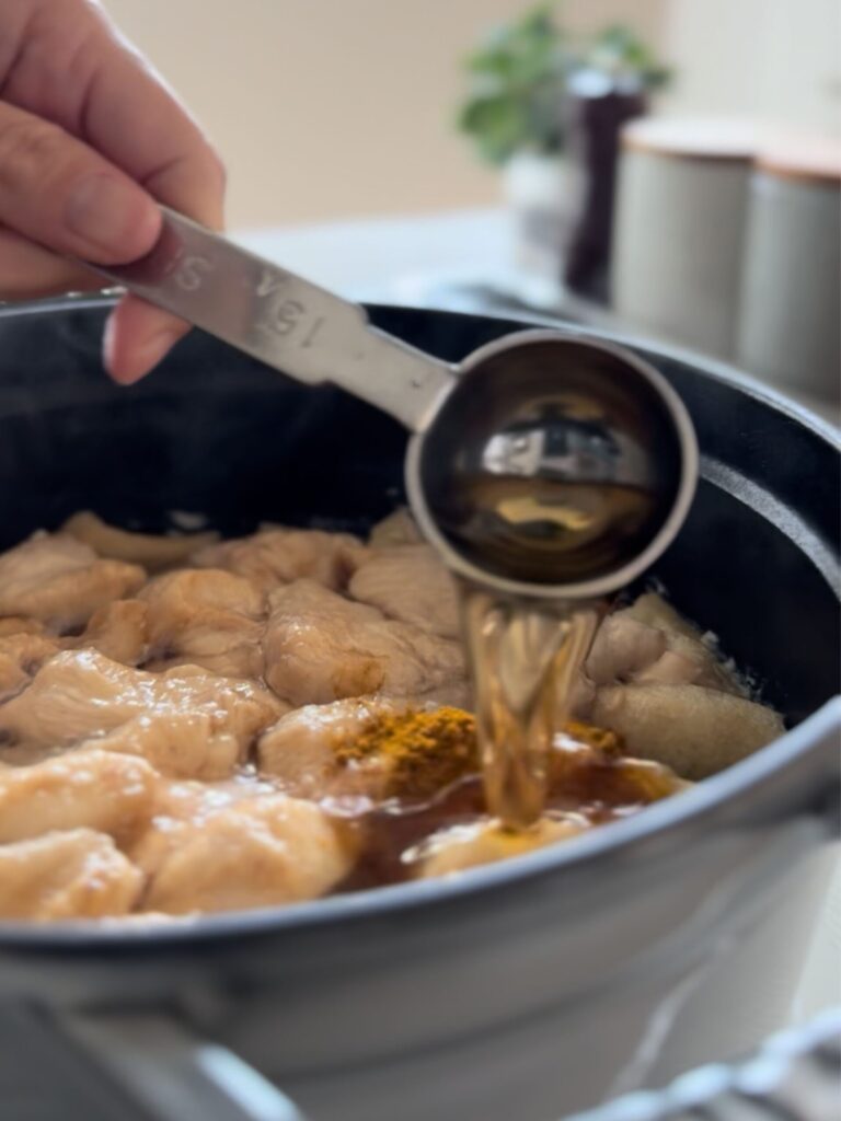 市販のルウを使わず、カレー粉と家にある調味料だけで、自然なとろみとコクのある一杯に仕上げます。