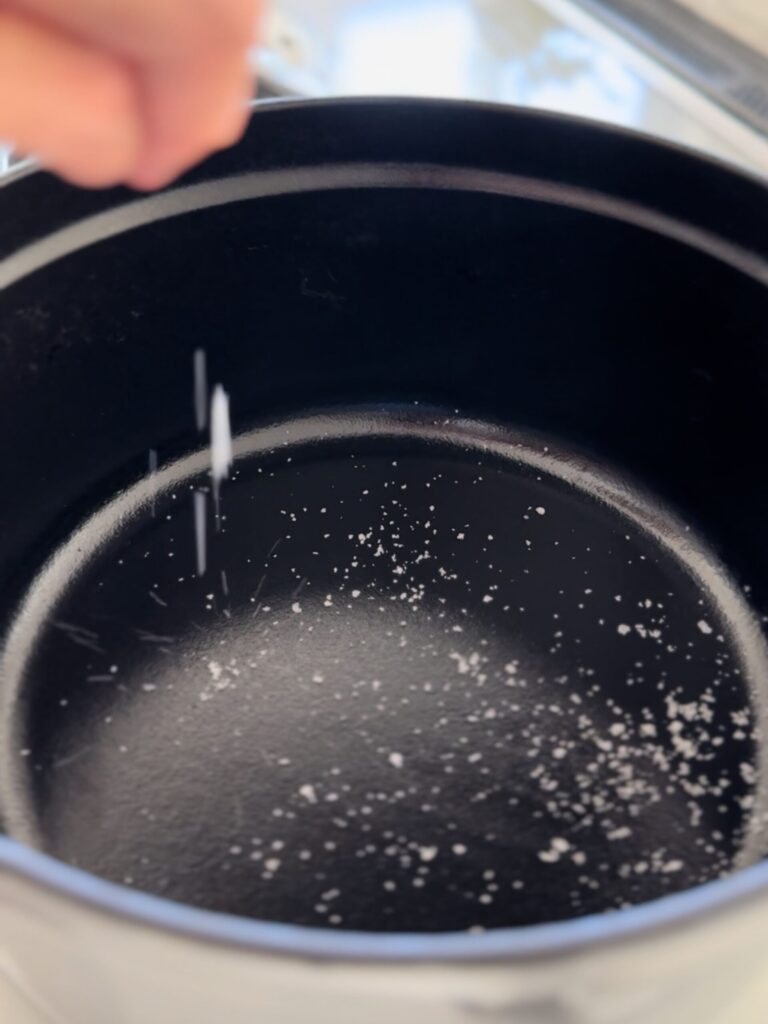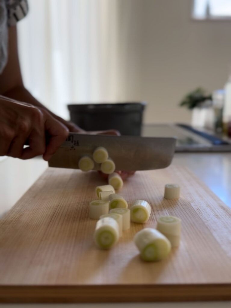 4.野菜が柔らかくなったら残りの水を加え、ひと煮立ちさせる。お好みで長ねぎの青い部分を散らす。