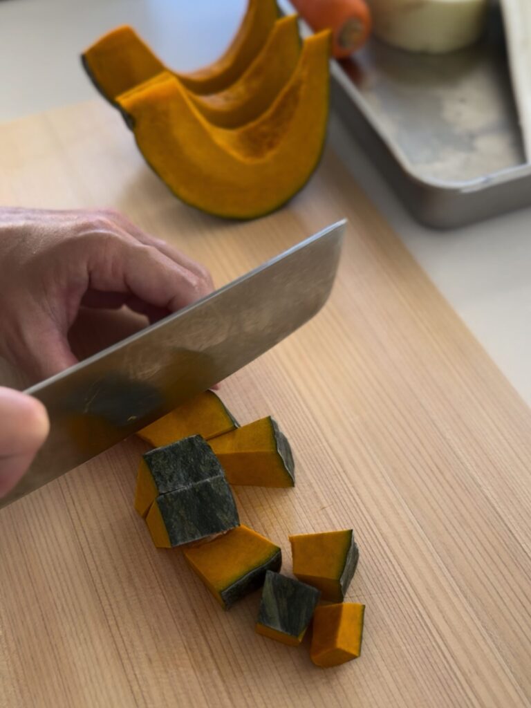 旬のかぼちゃを加えることで、さらにコクとやさしい甘みが引き立ちます。