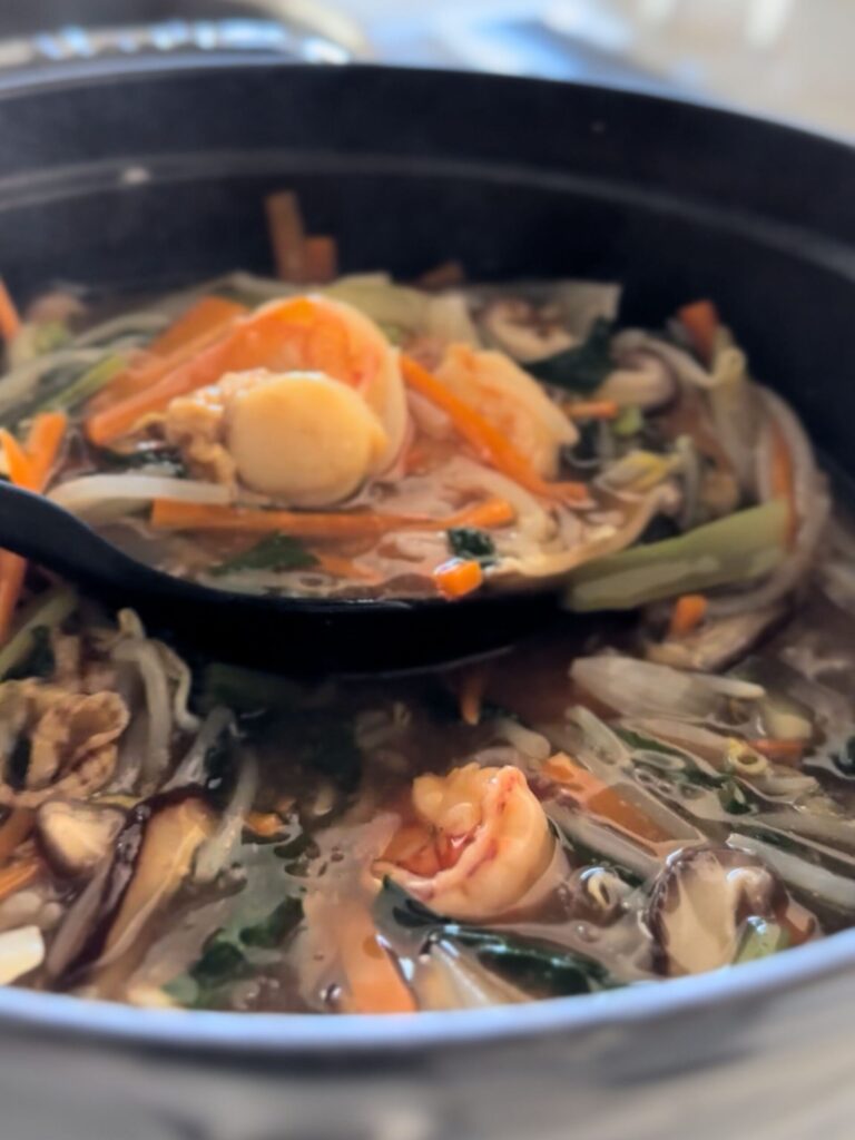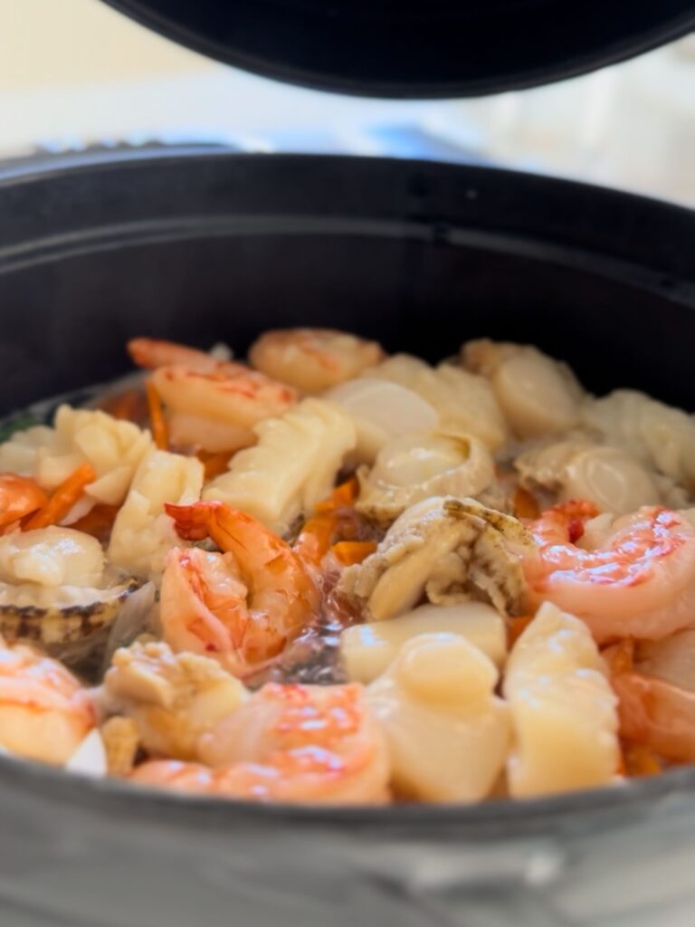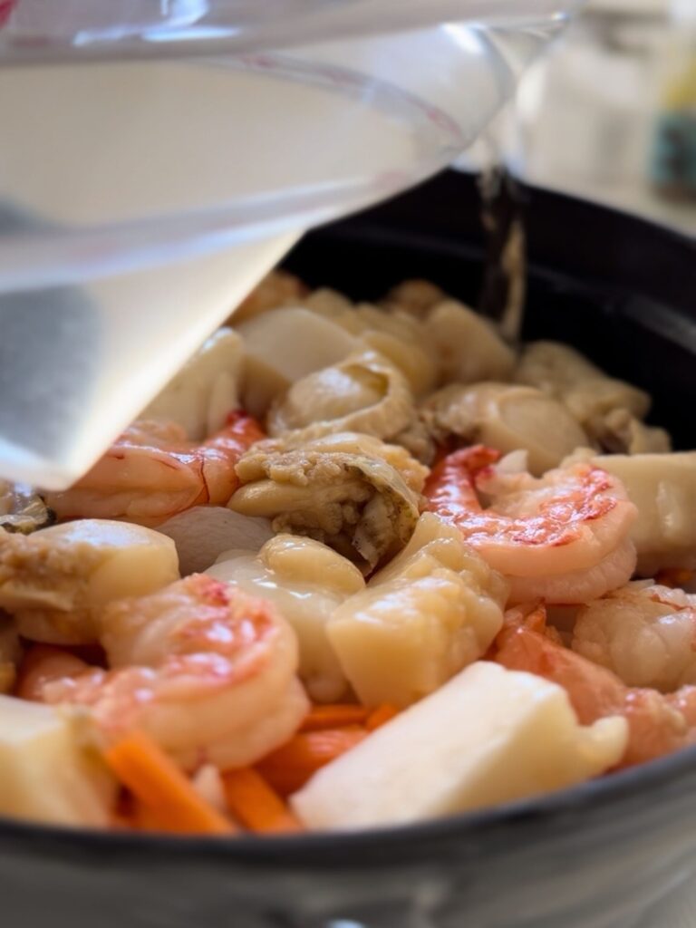 重ね煮にすることで、海鮮と野菜の旨みがしっかり引き出され、市販の素を使わなくても失敗知らず。