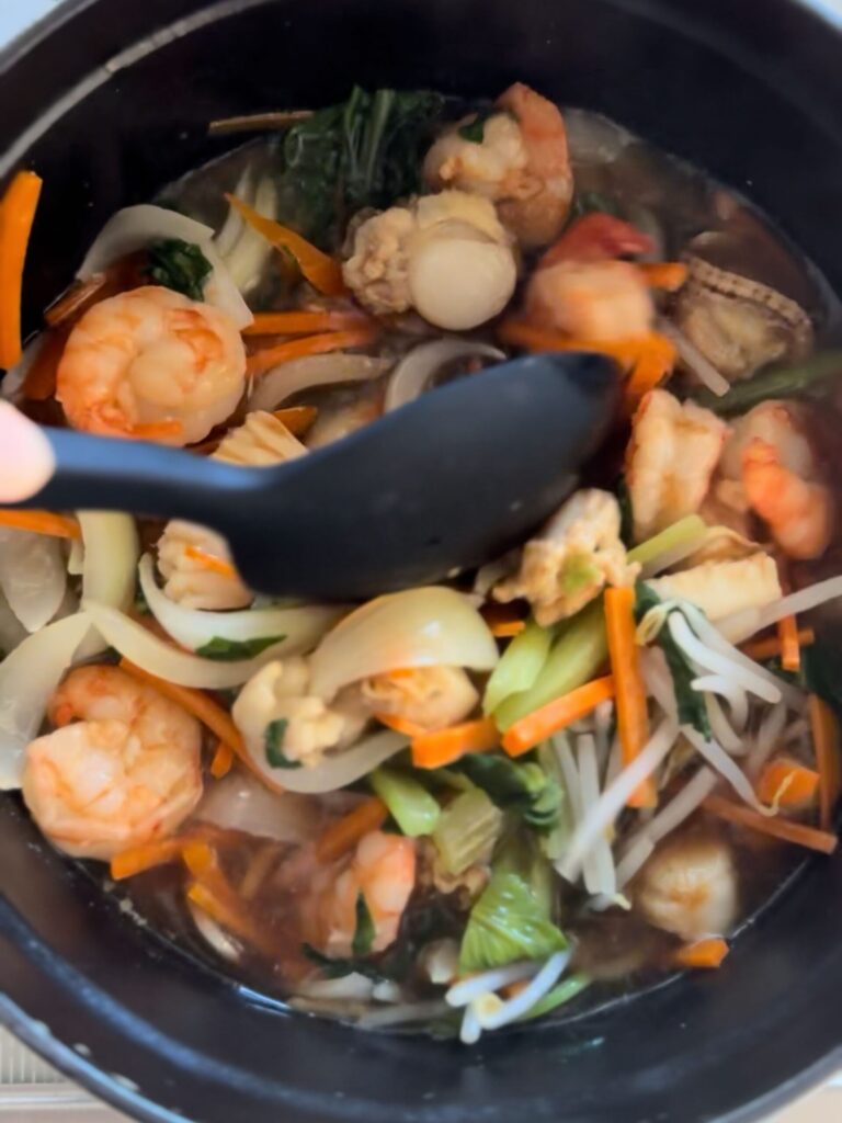 「重ね煮でつくる海鮮あんかけ焼きそば」は、海鮮と野菜の旨みがぎゅっと詰まったごちそう麺料理。
