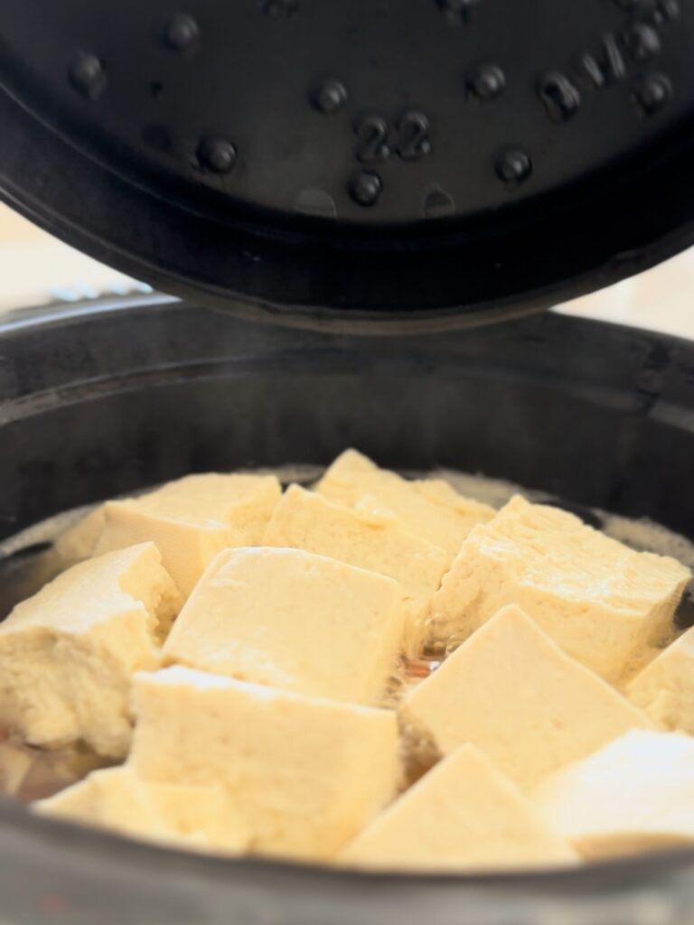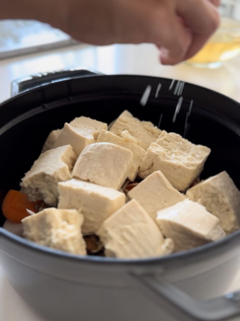 豆腐は手でちぎることでふんわりとなめらかに広がり、野菜の旨みと調和します。