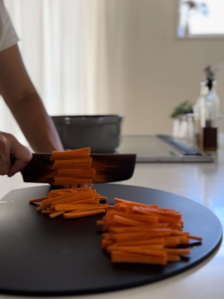 - また、以下の動画では混ぜていますが、にんじん・玉ねぎ・えのきなどをざっくり種類ごとに分けて小分けにしておくのもアレンジする料理によって使い分けできるので便利です。
