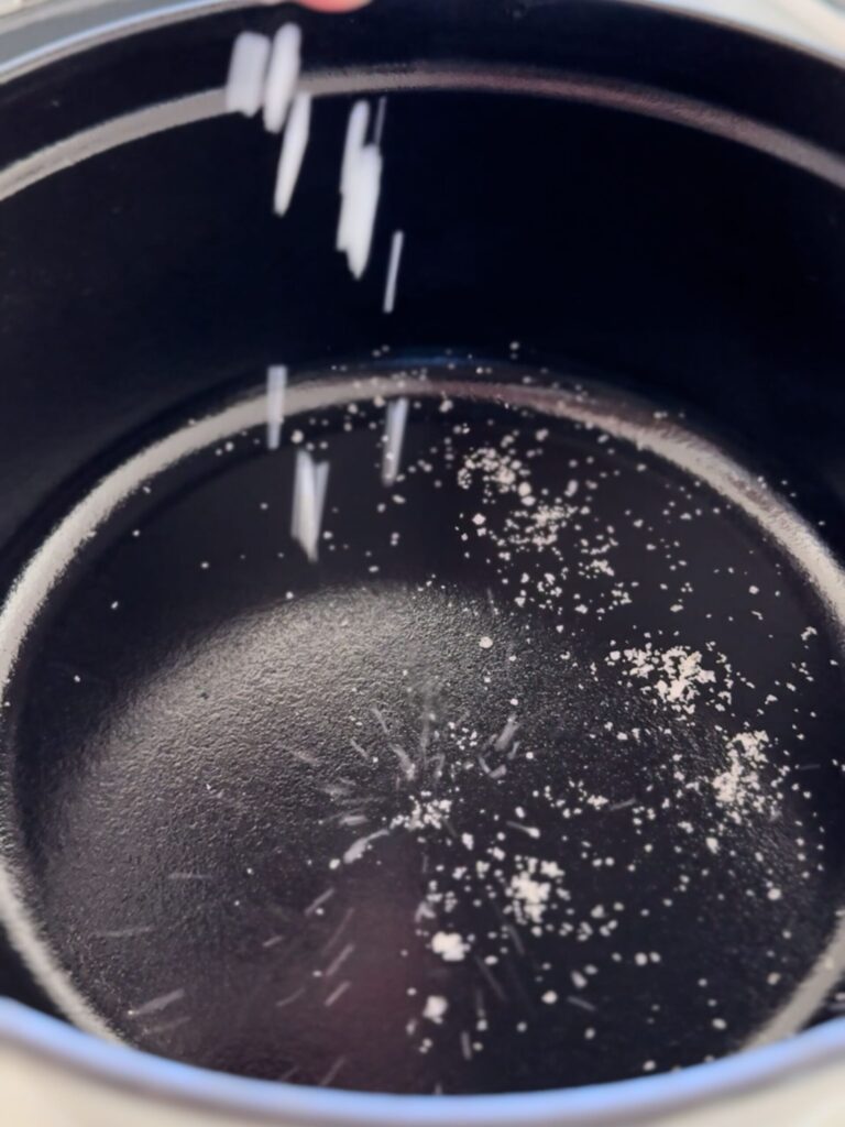 2.鍋に塩(小さじ1/4)をふり、えのき→玉ねぎ→にんじん→塩(小さじ1/2)の順に重ねる。