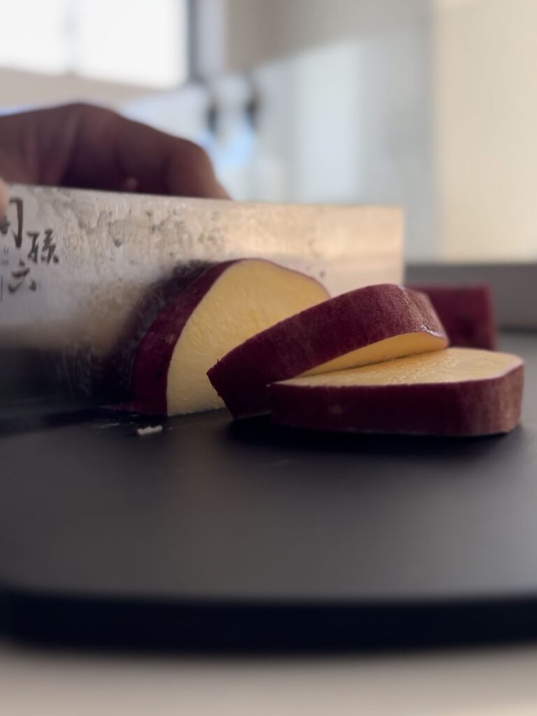1.鮭は食べやすい大きさに切る。しめじは石づきを取りほぐす。さつまいもは1cm厚さの半月切り、玉ねぎはくし切り、にんじんは乱切り、れんこんは1cm厚さの半月切りにする。【A】を混ぜ合わせておく。