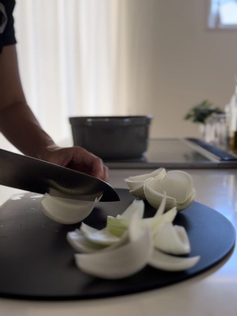 ストウブなどの厚手の鍋を使うと、素材の水分だけでふっくら蒸し上がり、まるで煮物のような奥深い味わいに。