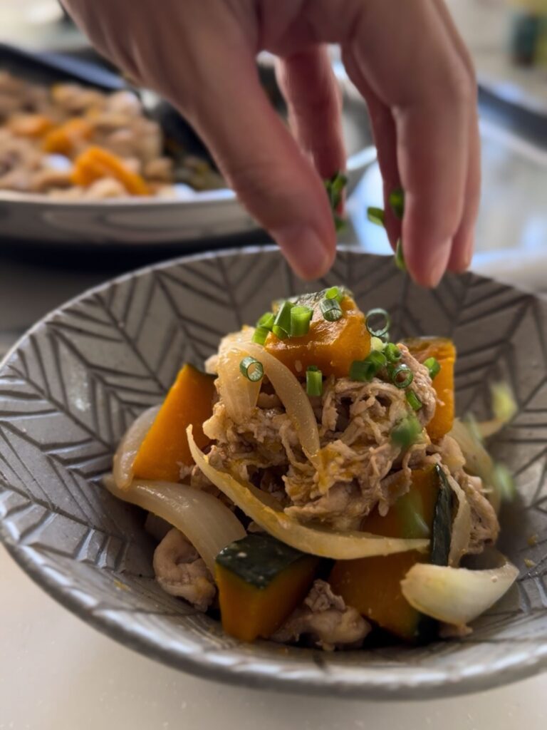 少しの水分でじっくり火を入れることで、かぼちゃの自然な甘みと豚肉の旨みが重なり、驚くほどやさしい味わいに仕上がります。