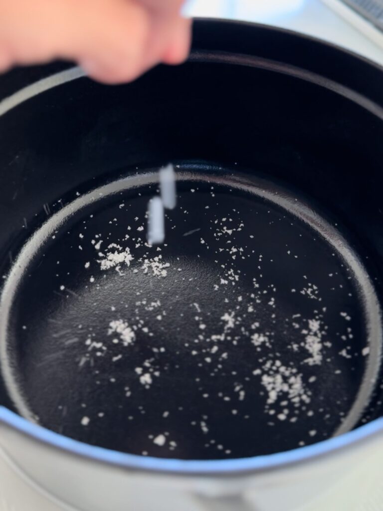 2.鍋に塩(ひとつまみ)→しいたけ→長ねぎ→じゃがいも→たまねぎ→にんじん→にんにく・生姜→みその順に重ねる。