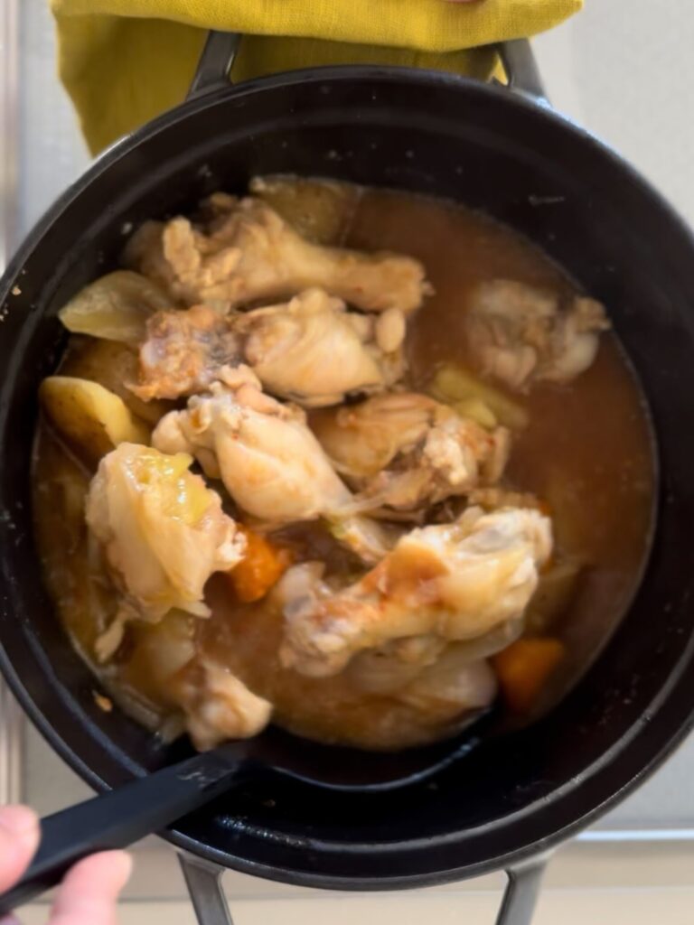 鶏肉と根菜を重ね煮にすることで、素材の旨みがしっかり引き出され、スープはピリ辛であと引くおいしさに仕上がります。