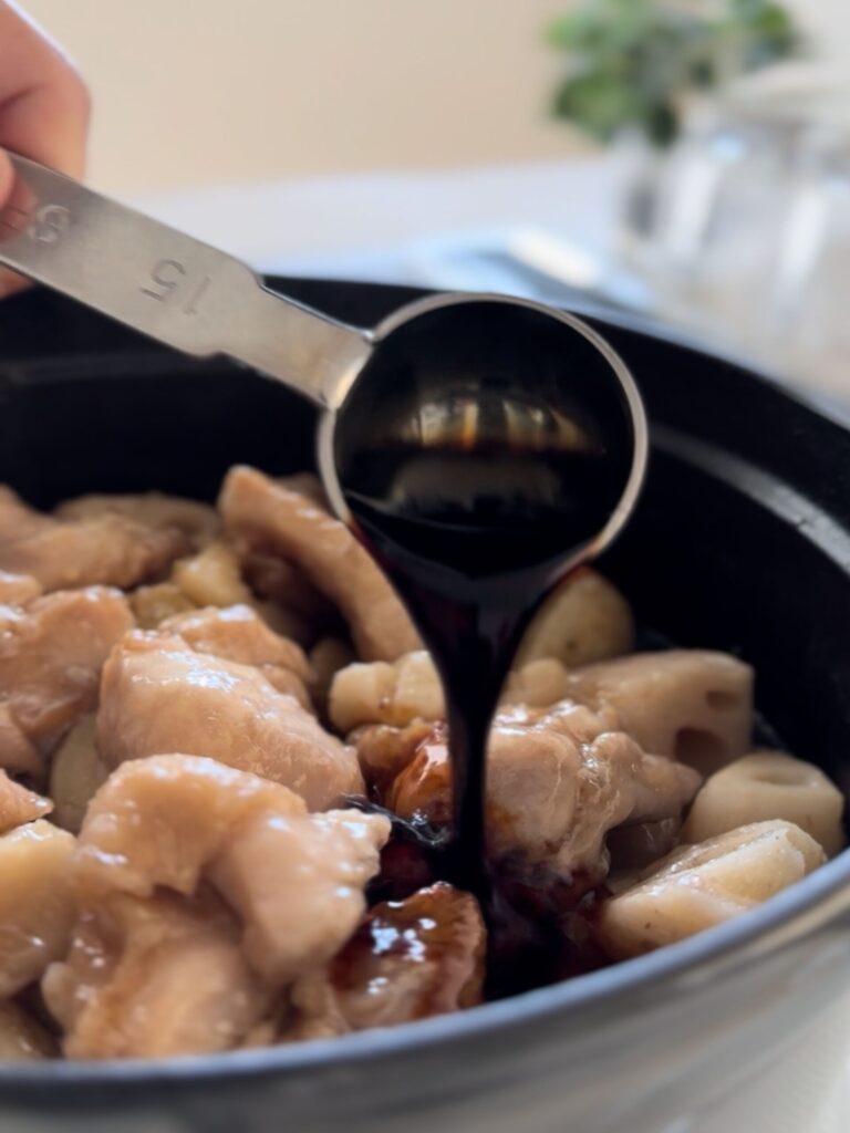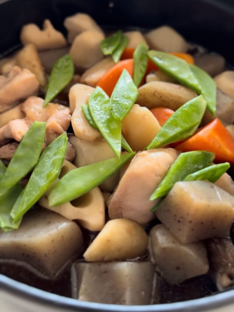 重ね煮で作る筑前煮は、調味料を最小限に抑えながらも、素材の力でしっかりおいしく仕上がる一品です。