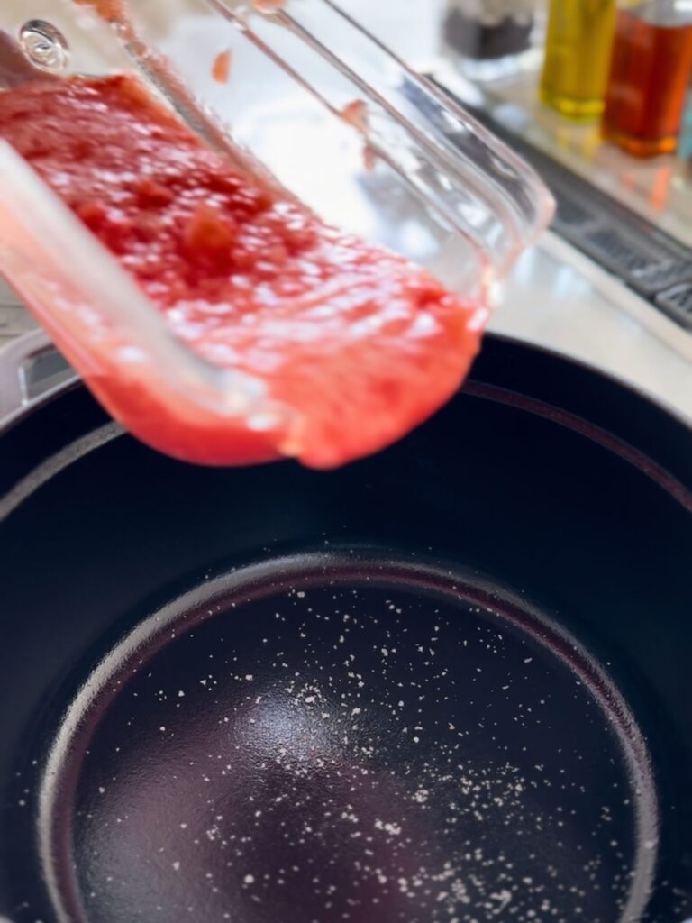 3.蓋をして中火で加熱し、沸騰したら弱火で8〜9分煮る。焦げつきそうな場合は水を50ml加える。