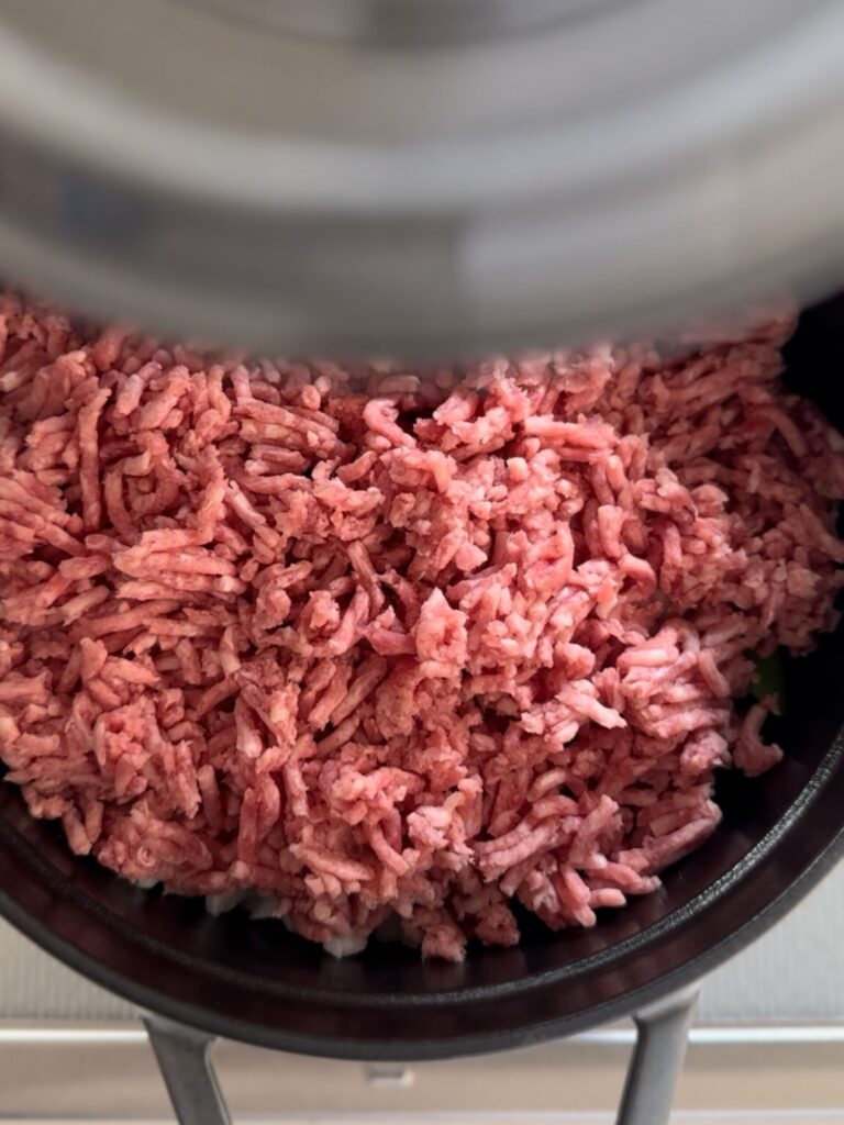 1.合いびき肉に塩こしょうをふる。トマトは皮付きのまますりおろす。なすは1.5cm厚の輪切り、オクラは板ずりして斜め半分に切る。玉ねぎは粗みじん切り、にんにく・しょうがはすりおろす。