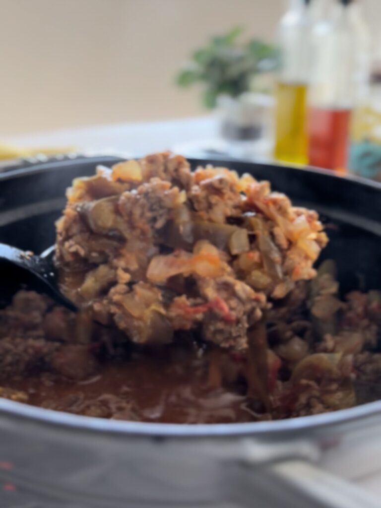 包丁で切ったらあとは重ねて火にかけるだけ。野菜の甘みとスパイスの香りが広がり、洗い物も最小限で済む“忙しい日の味方レシピ”です。