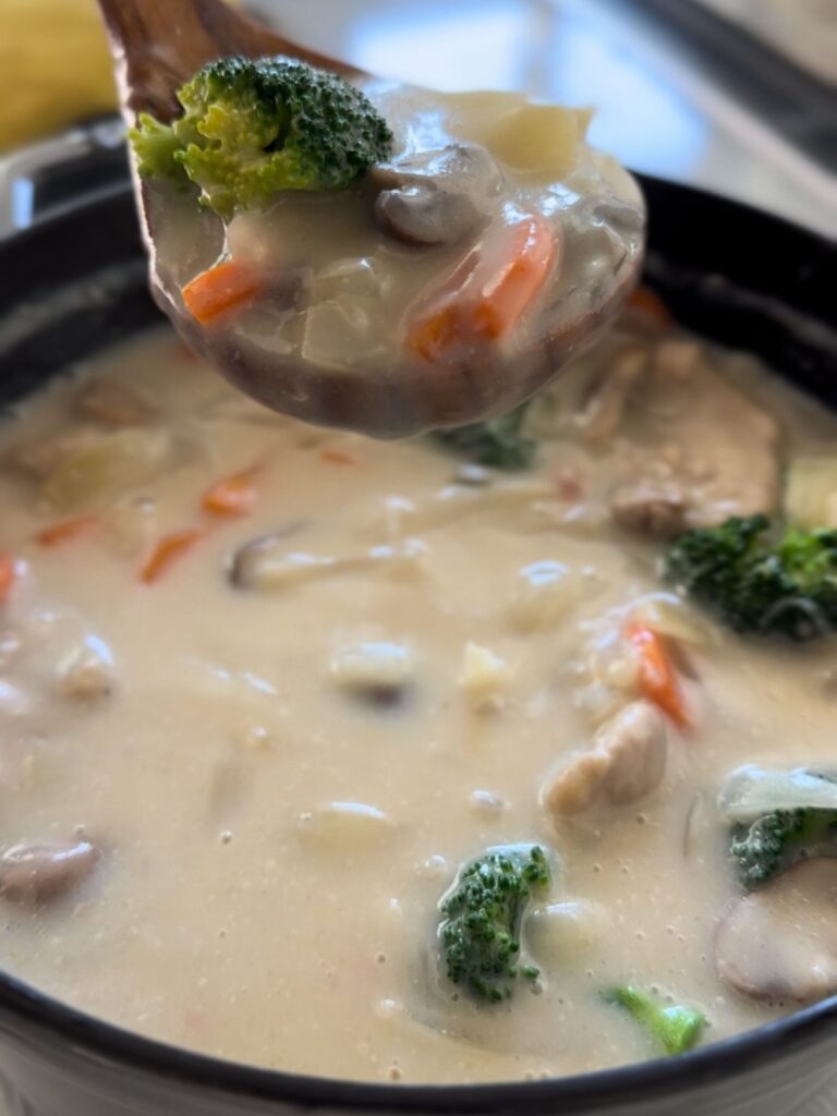 米粉と豆乳で作るクリーミーなシチューも重ね煮ストックを使えば手軽に作れます。