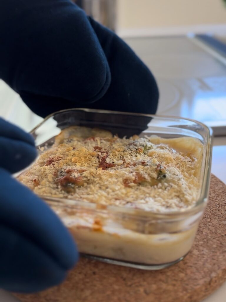 クリームシチューをオーブンでこんがり焼けばグラタンにアレンジできます。